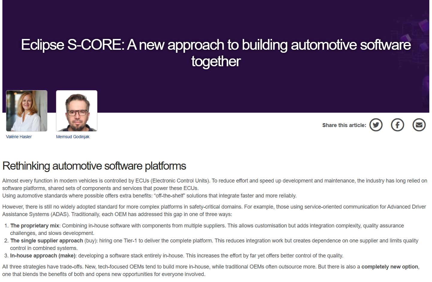 The first version of Eclipse S-CORE (Safe Open Vehicle Core) lays the groundwork for open, safety-ready automotive software.