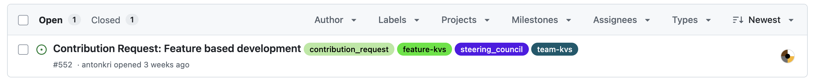 Every Feature Team should have its own label for filtering of GitHub Issues, PRs or discussions.